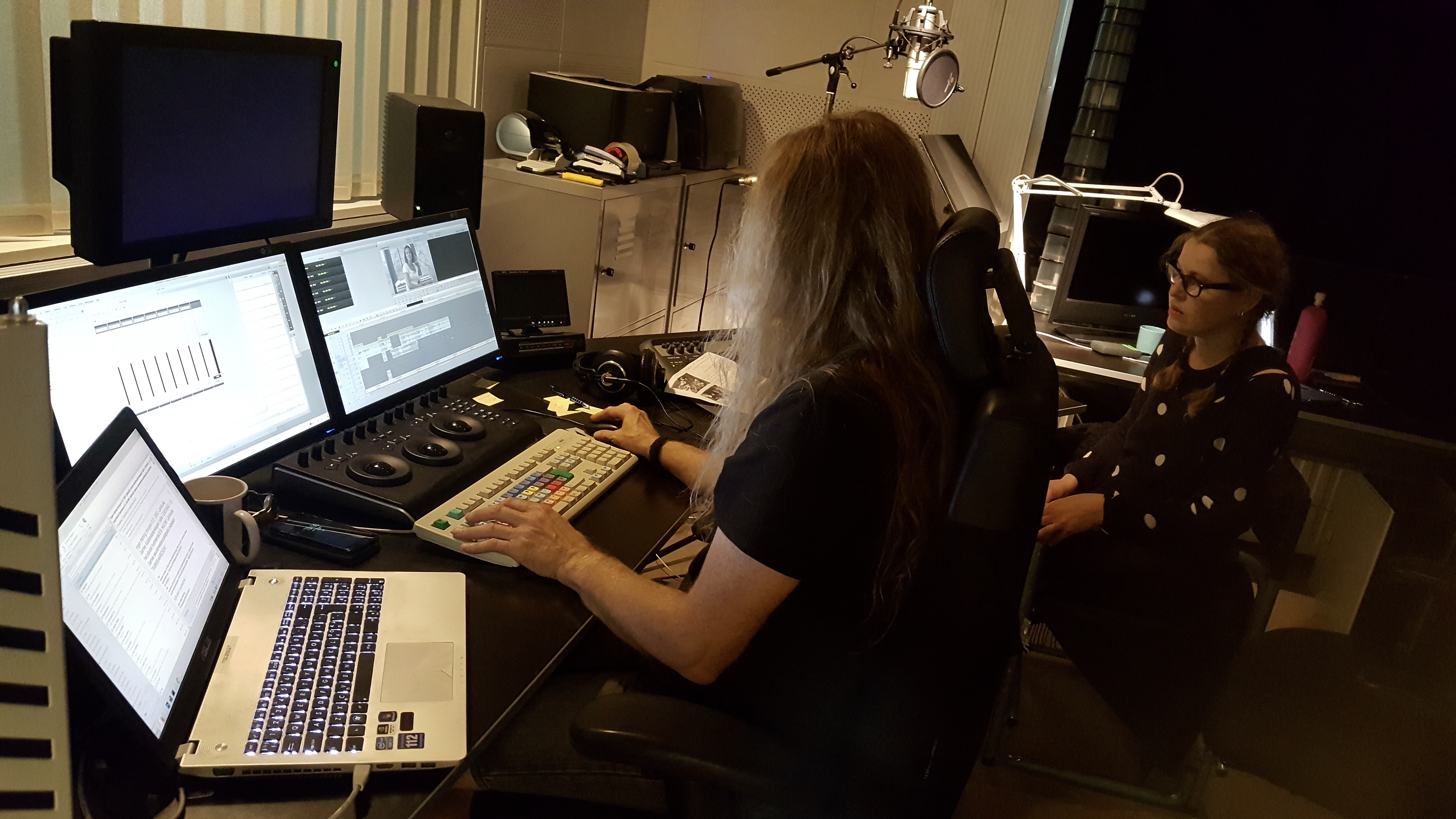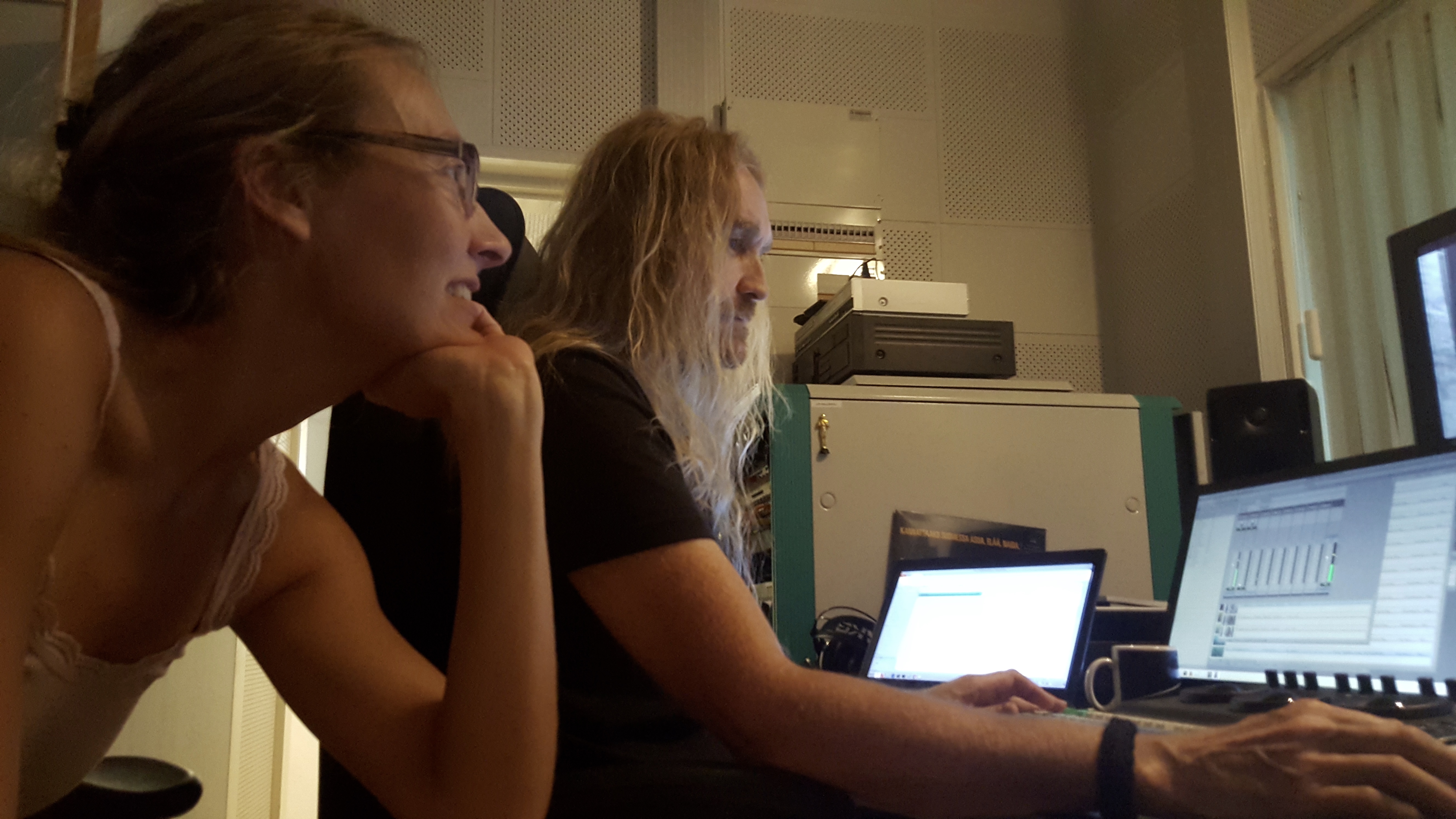 Emma, our editor Klaus Grabber and Janna in the midst of Online editing in Ekenäs.
